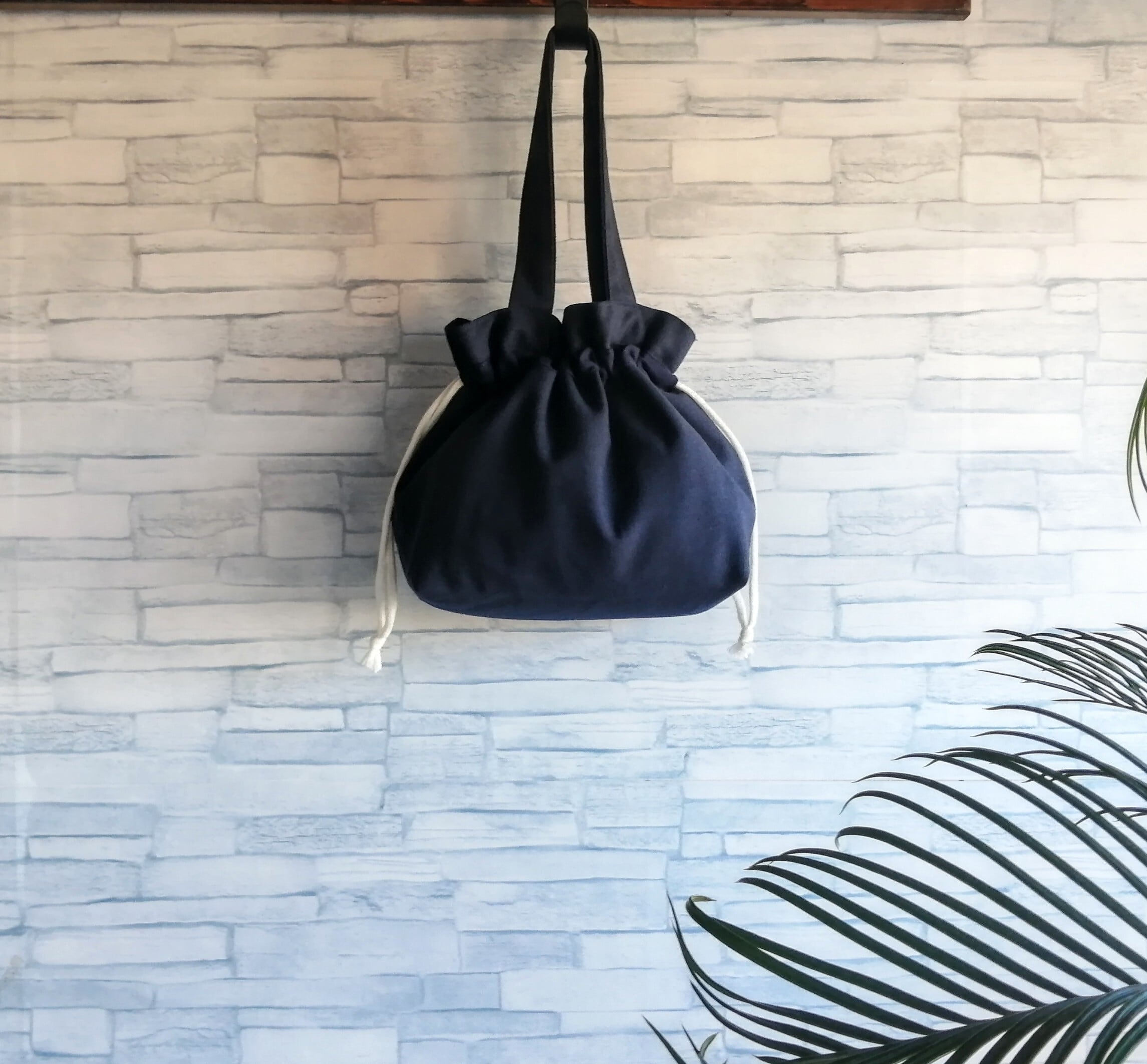 手頃なサイズの丈夫な帆布の小さな巾着バッグです。
